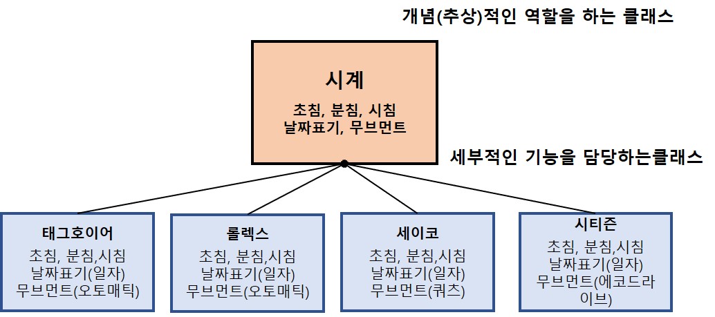 - 각 그룹별 사물들의 공통된 행동(메서드)과 속성(변수)을 추출하여 추상적인 역할을 하는 개념을 만들어 준다.
