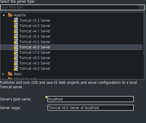 이클립스(Java EE)에서 Server -> new를 선택하여 Tomcat을 추가하려고 하는데 간혹 Server Name이 아무런 값도 안뜰 때가 있다. 이럴때 next버튼도 비활성화 되어있어 서버를 추가할 방법이 없다.
