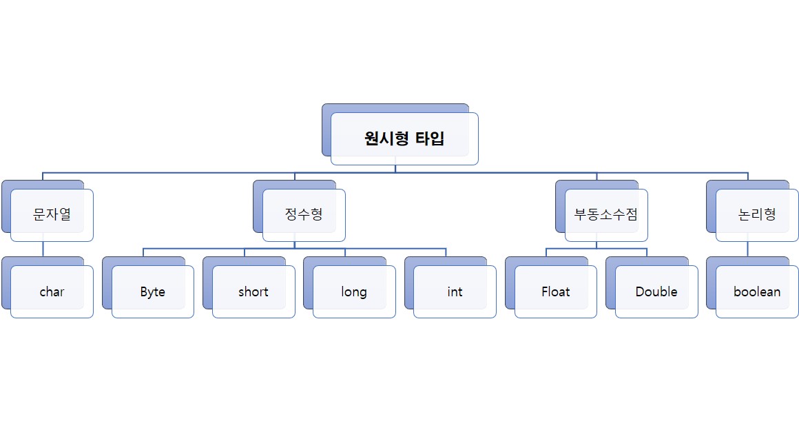primitive 변수타입의 종류는 아래 그림과 같이 '문자열', '정수형', '부동소수점', '논리형' 4가지로 구분될 수 있다.